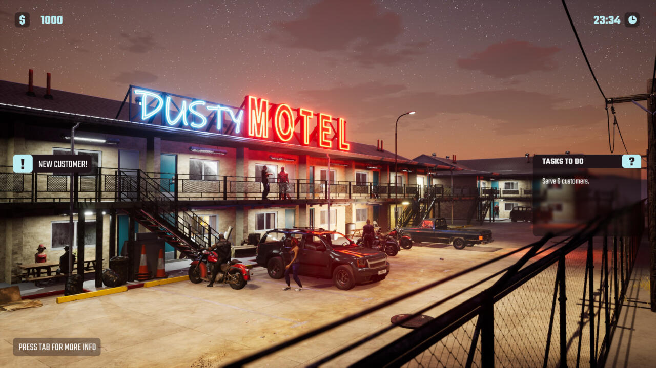 Motel Simulator will be connected to gas stations and restaurants, so progress in one area will affect the number and type of customers that come to the motel. All of these elements in the game are intertwined and affect each other in interesting ways.